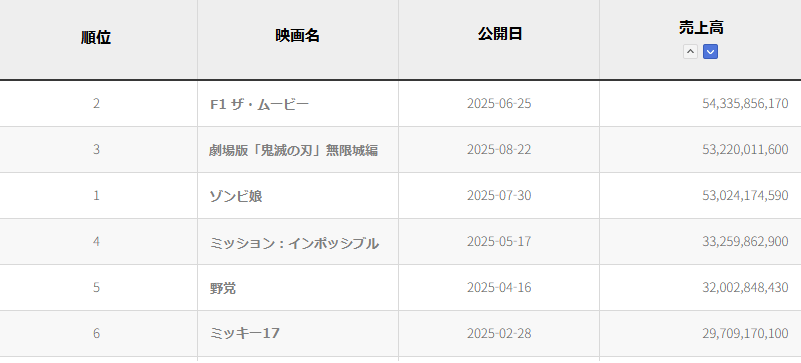 ゾンビ娘と鬼滅の刃の観客数の差が70万人なんだけど