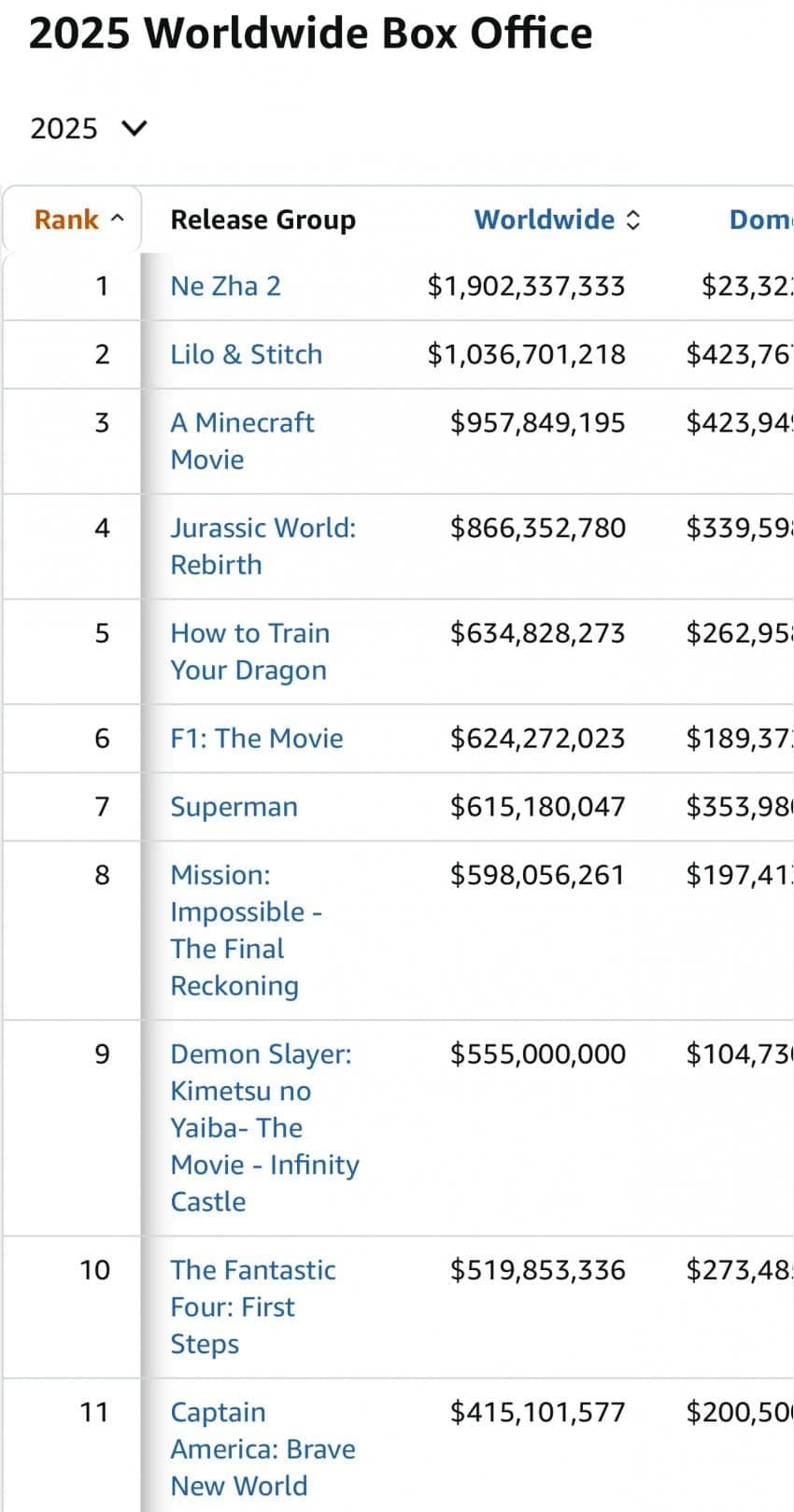 アジアの映画やアニメが1億ドルを超えたはずがないんだけど