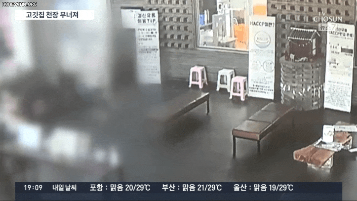 “突然天井がガシャーン”慶山(キョンサン)の精肉店の天井崩落で客6人負傷