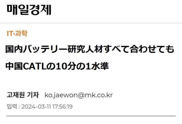 月200でも働く数十倍規模の研究人材+無制限補助金コンボで世界のバッテリー産業を総なめして黒字を出している