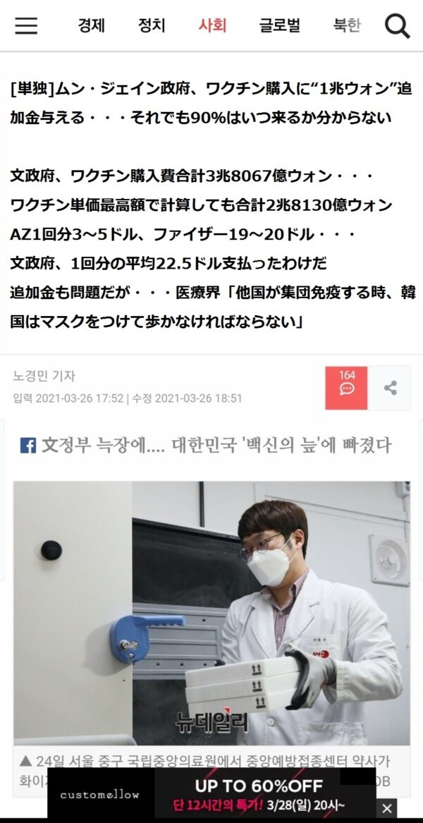 ワクチン供給に支障がないと豪語したムン・ジェイン政府がぐずついたせいで無駄金を使ったわけだ。