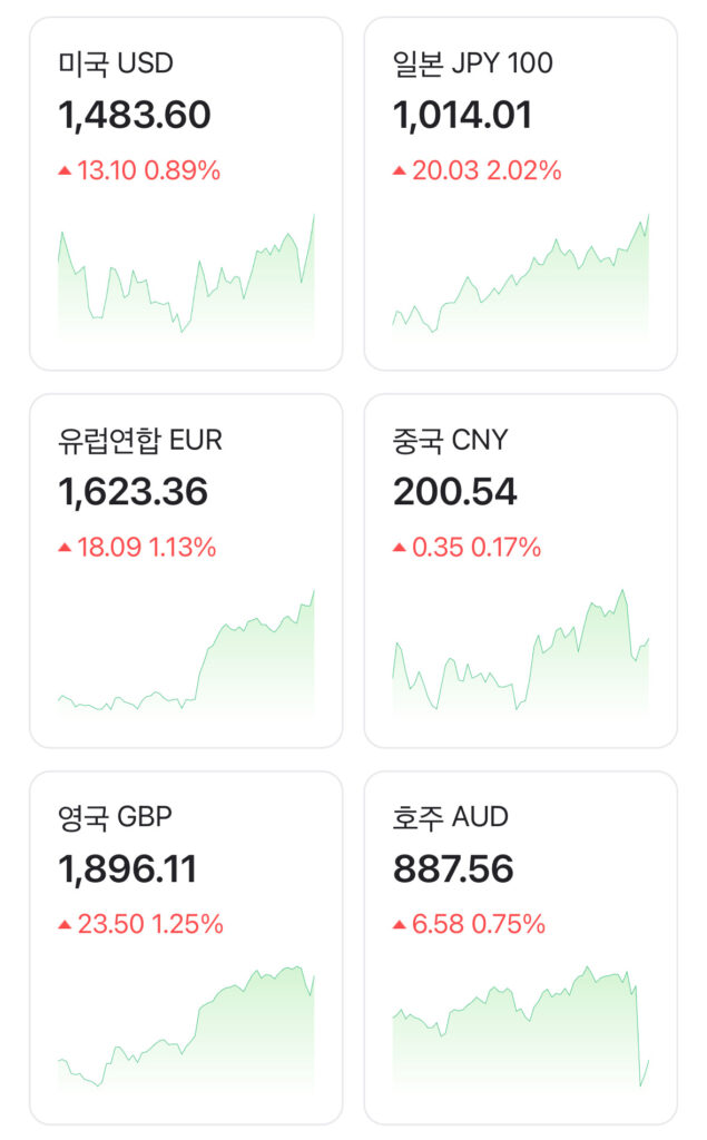韓国人「現在のウォン・日本円為替レートをご覧ください」→「安全資産の日本円」「円キャリー清算怖いんだけど(ブルブル)」「1000ウォン以下の時が異常だった」Image:mlbpark 日本円ヤバイね(ブルブル) 久しぶりに1000ウォン超えたよ 日本旅行のメ...
