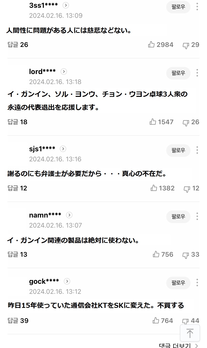 イ・ガンインのインスタグラムも4万以上の非難コメントが書き込まれている。