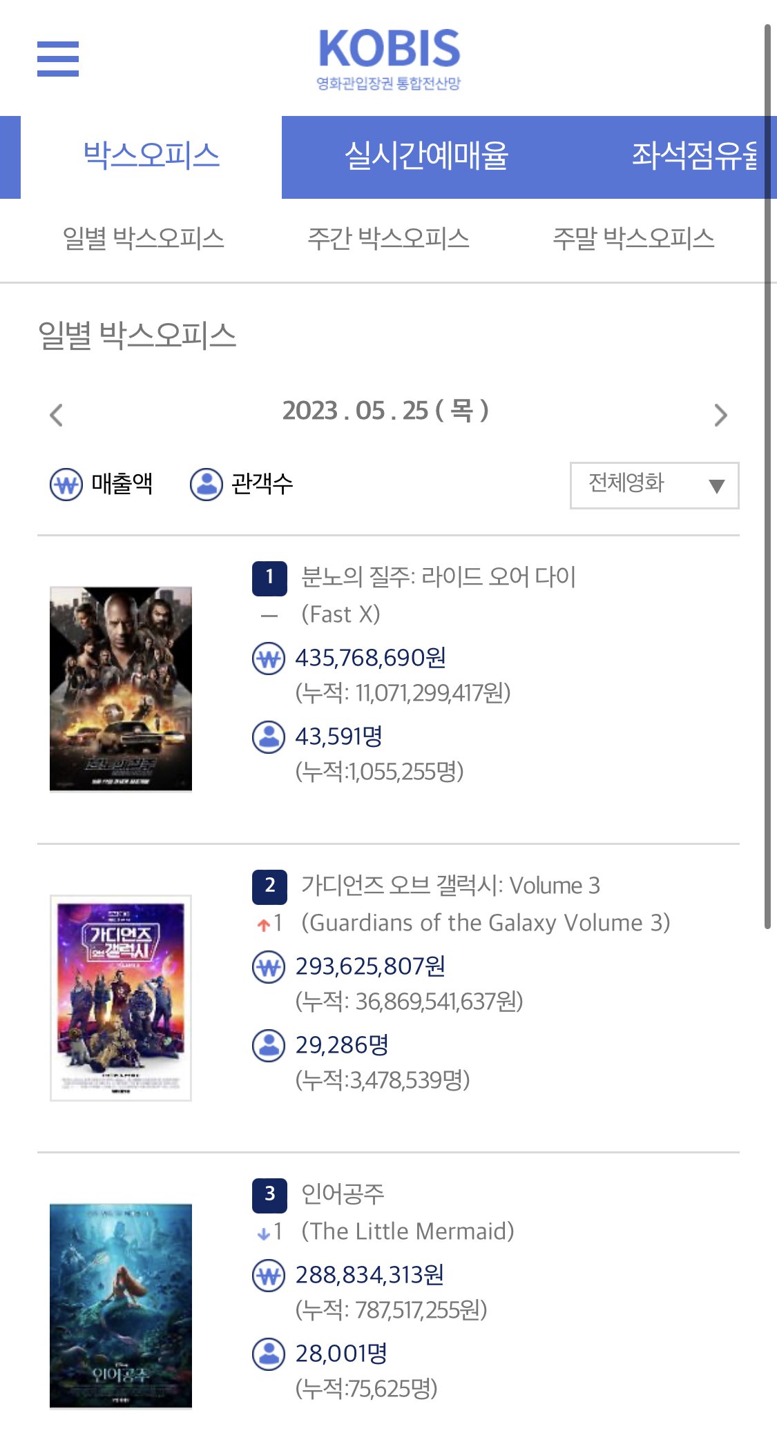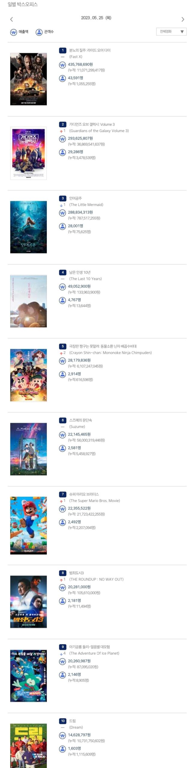 韓国人「実写版リトル・マーメイド、韓国初日の成績をご覧ください」→「マジでめちゃくちゃだね・・・」「ディズニー映画が公開日に1位になれないのもレジェンドだよ」Image:fmkorea 477,362,942ウォン 45,903人 ...
