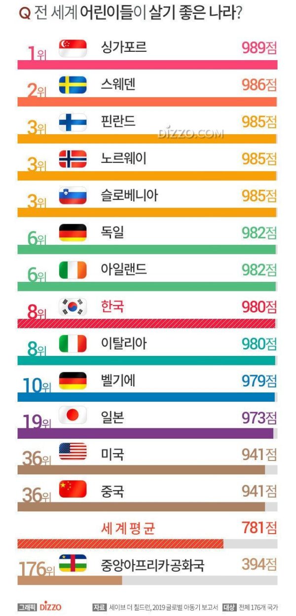 東アジア国家では、日本と中国がそれぞれ13位、100位を占めた。日本と中国は、前年比でそれぞれ3階段、11階段下落した。