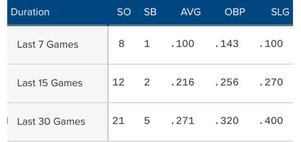 ドジャースでジョンフレベルで長くスランプに陥れば出場時間が確実に減って成績が落ちる機会がないと思うので