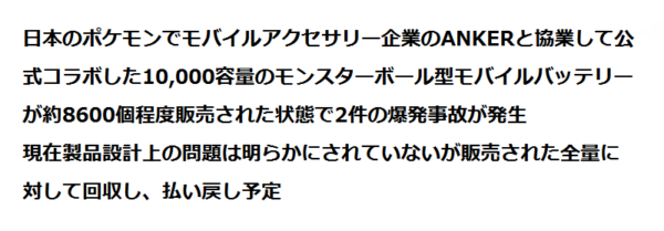 この度「モンスターボールモバイルバッテリー Anker 10000mAh」を自主回収することにいたしました。