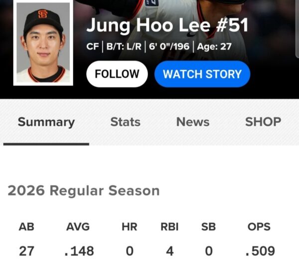 韓国人「イ・ジョンフ、4打数無安打3三振 打率0.152」→「あまりにも深刻」「ここまで通用しないとは思わなかった」【MLB】