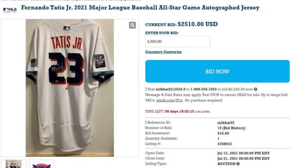 現在オークション2位のタティスjrのオールスター直筆サイン入りユニホーム