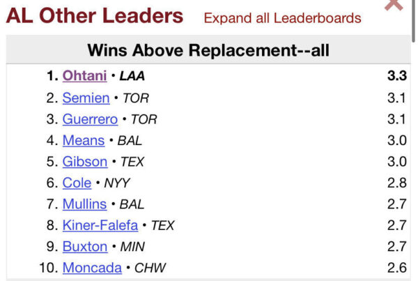 イチロー以来初らしいね。6月にWARリーグ1位。