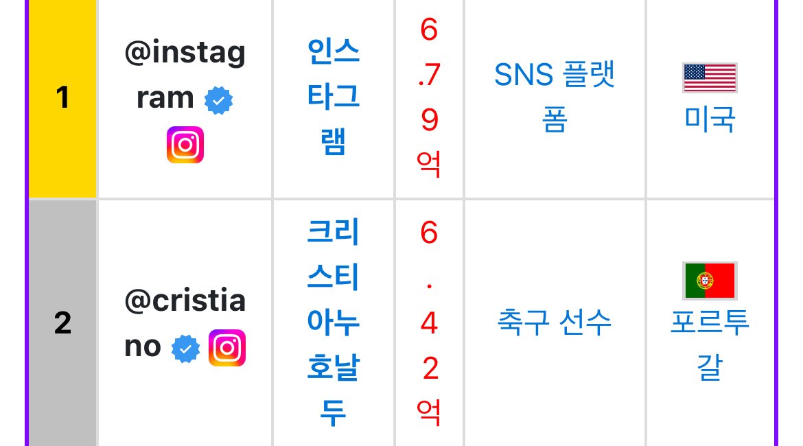 世界1位 インスタグラム公式アカウント フォロワー 6.79億