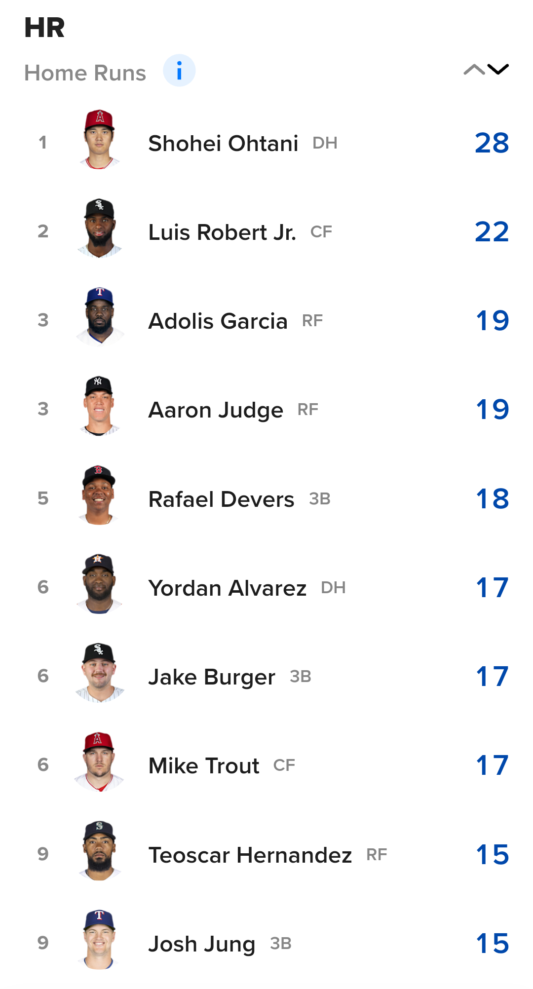 シュワーバーは打率2割もないのにホームランは全体6位(ブルブル)
