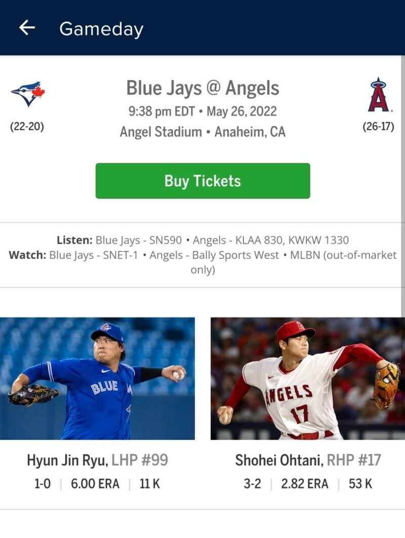 リュ・ヒョンジン vs 大谷、対決確定・・・27日の試合先発登板公式発表