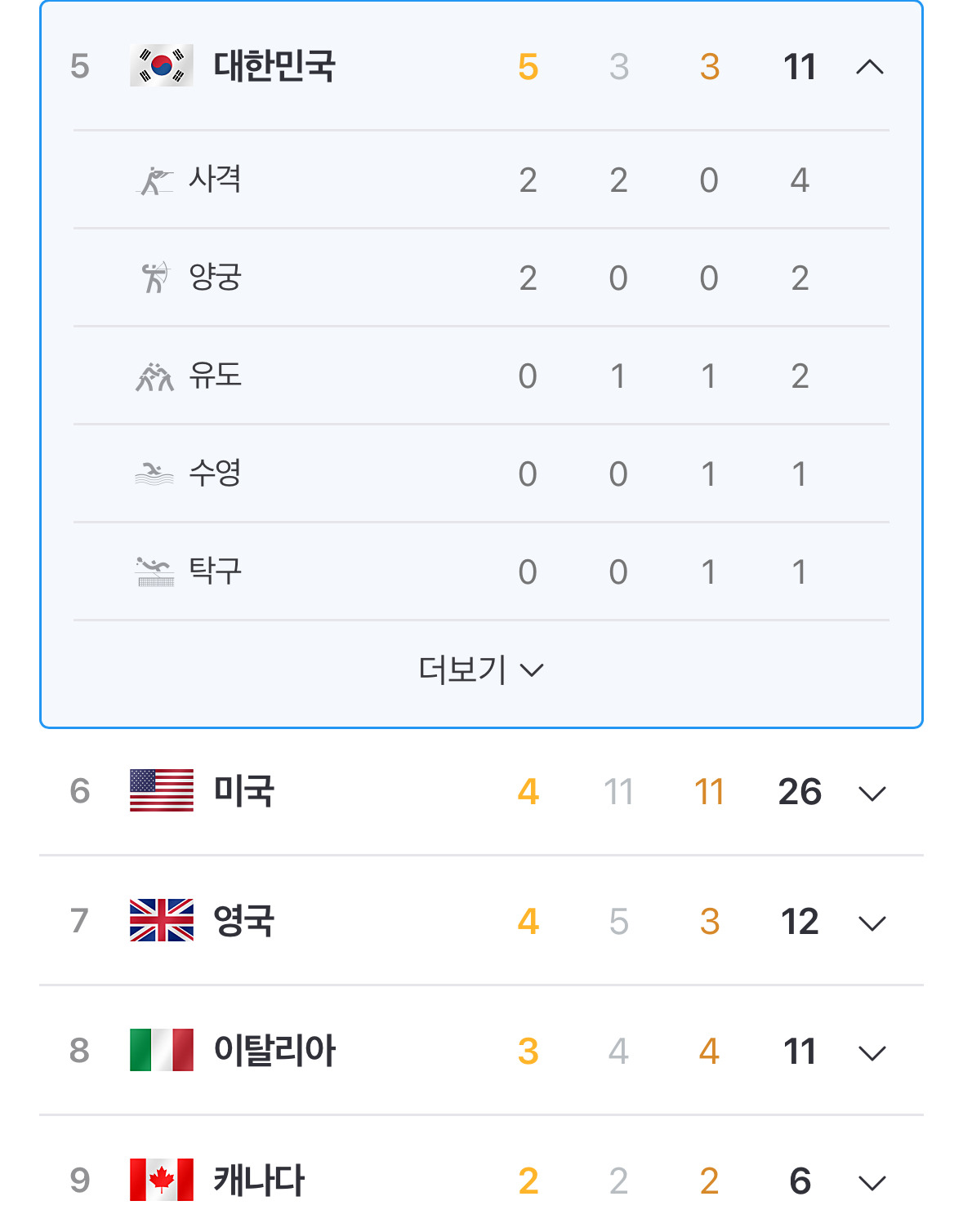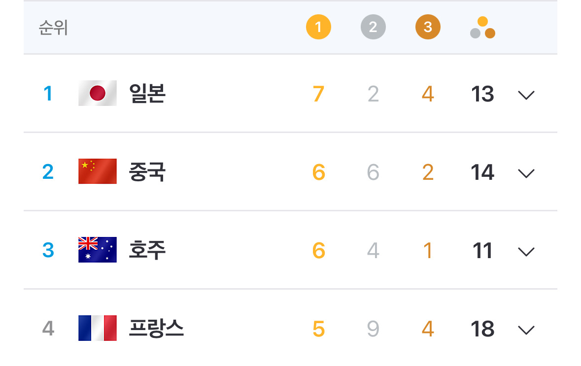 韓国人「日本、パリ五輪メダルランキング1位・・・」→「今日も結局日本が1位w」「フランスは開催国なのに(汗)」「韓中日が本当にすごいわ」Image:cafe daum
