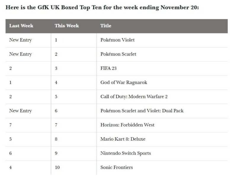 ポケットモンスタースカーレット・バイオレットは英国でとてつもないローンチ販売を記録した最新作で以前の1位だったFIFA23より4%さらに高い