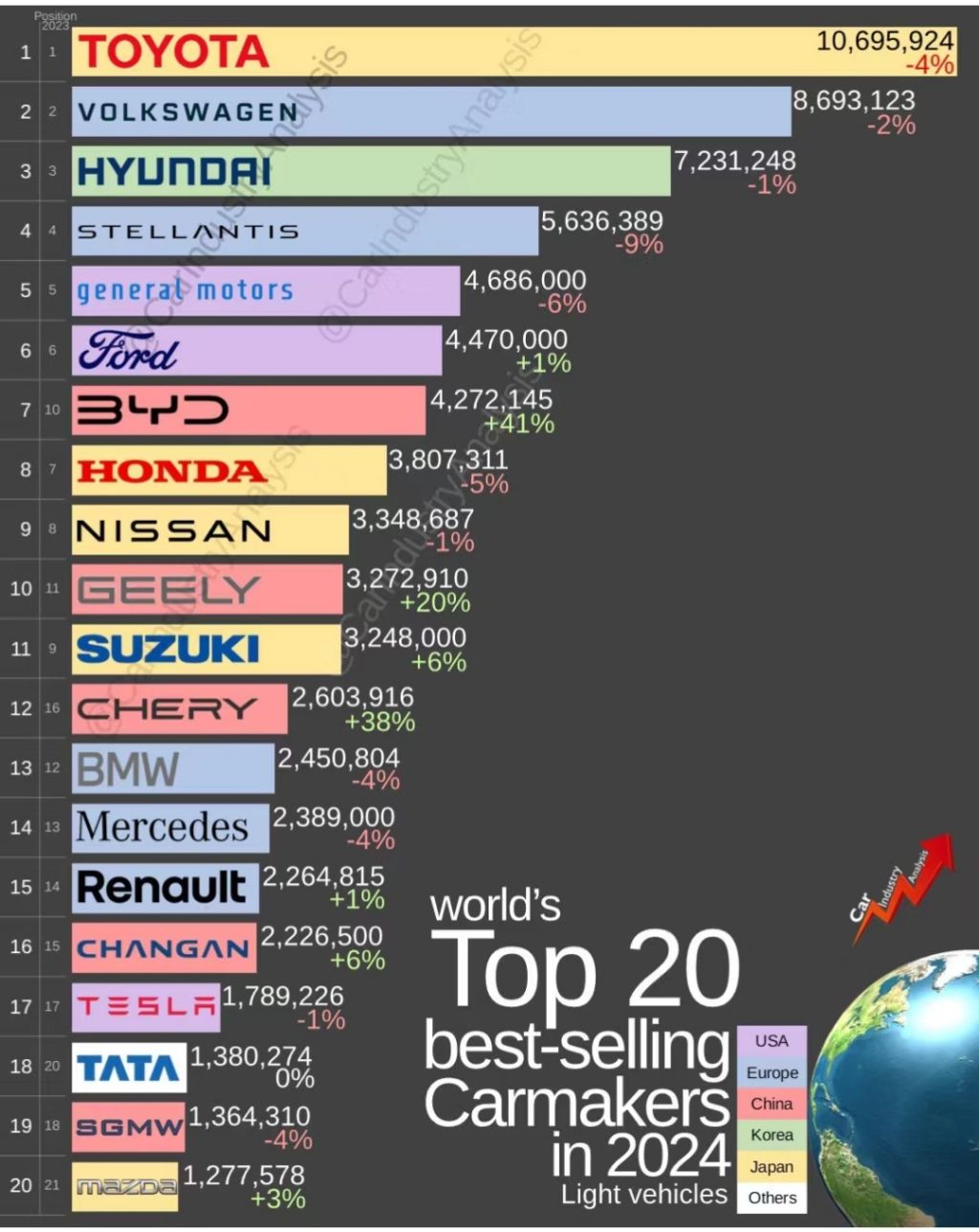 韓国人「2024年世界モデル別新車販売ランキングをご覧ください」→「日本車すごく売れるね・・・」「セダンは終わりに近づいているとはいえカローラ、カムリはすごいね」「韓国もカローラ売ってほしい」Image:ppomppu