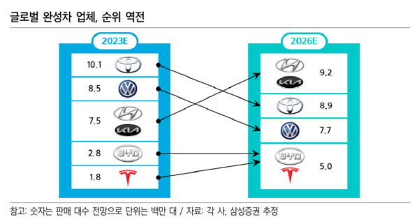 イム・ウンギョンサムスン証券研究員は「現代自動車グループは今年750万台販売から2026年920万台販売で世界1位の企業になるだろう」としながら「トヨタとフォルクスワーゲンが中国で危機に瀕している間、現代・起亜は米国とインド販売で突破するだろう」と見通した。