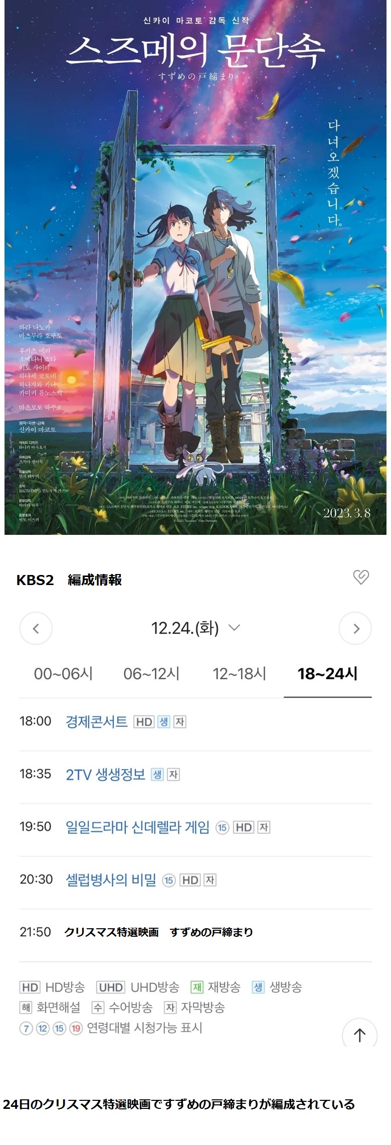 韓国女「韓国の公共放送局、クリスマスに日本映画を放送へ・・・」→「」【韓国の女性コミュの反応】