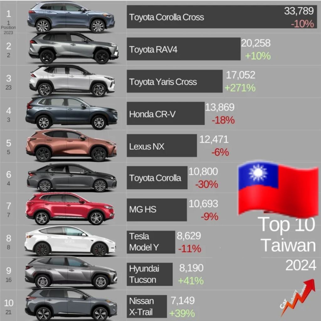 2024年台湾自動車市場車種別販売台数ランキングトップ10