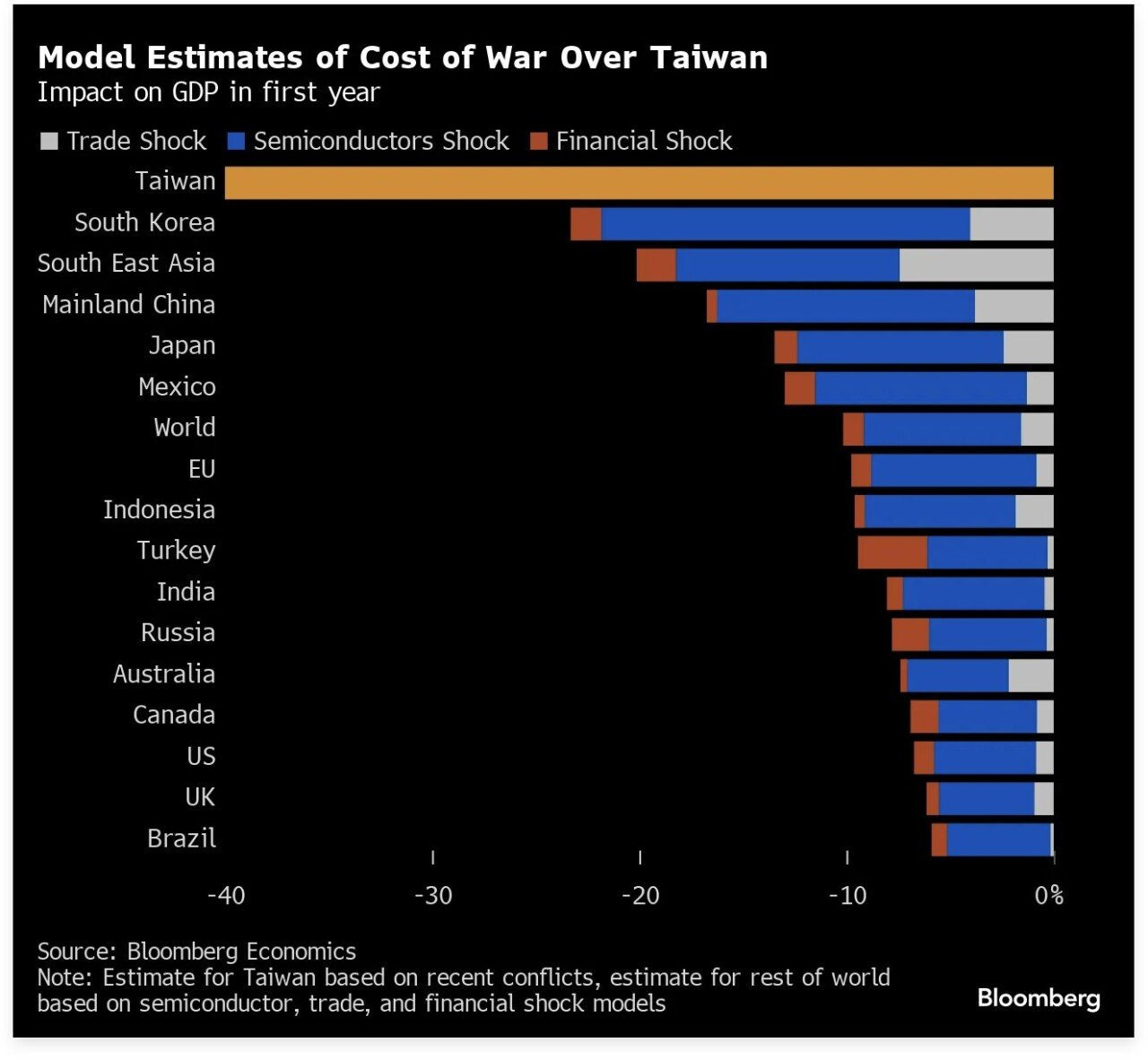 そんもん、今の世界同時株安程度じゃないから、全世界が影響を受ける。台湾戦争だ。だから今、関税で殴ってるのかもしれん。