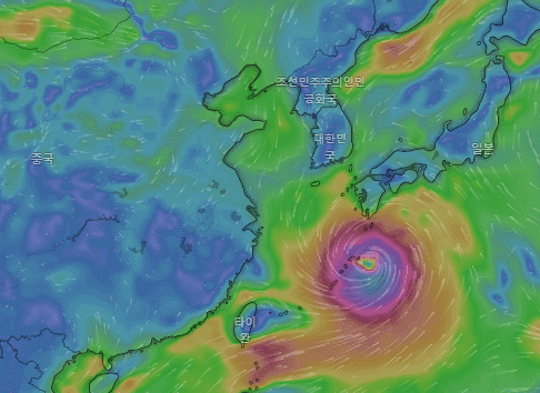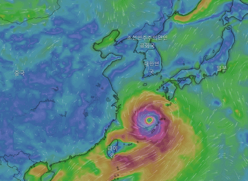 台風が突然方向を変えて日本を通過して韓国をかすめるように過ぎて東海に行く