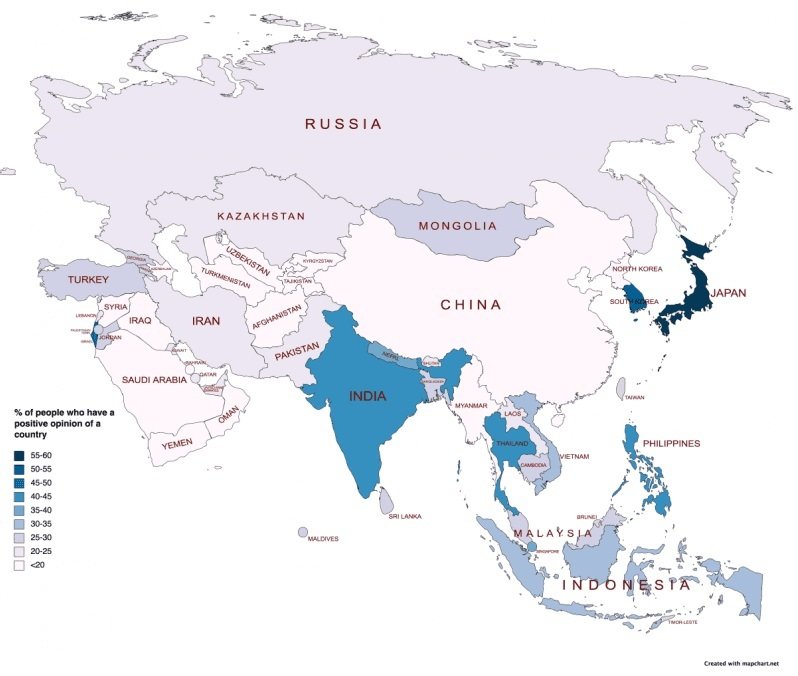 偶然の一致なのか「中国包囲網」に参加中の国家がだいたい好感度が高いね。