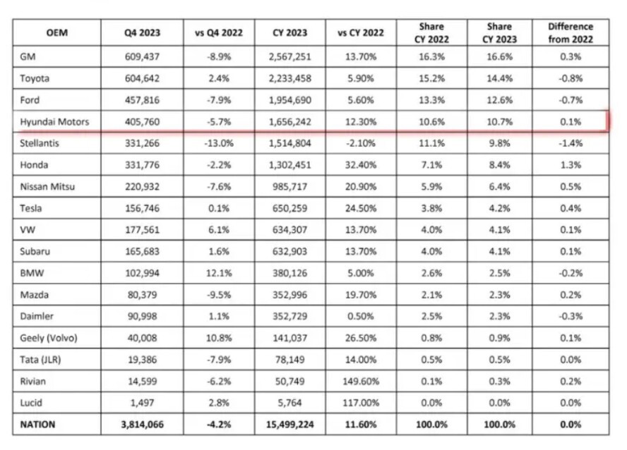 現代・起亜自動車、ステランティスも抜いた・・・今年の米国市場4位