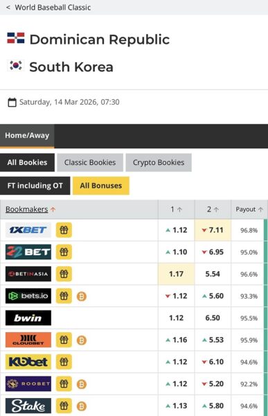 今大会の優勝候補は日本、アメリカ、ドミニカの3つだと思ってたけど日本は3番人気なんだね。とりあえずドミニカは朝鮮ボコボコ粉砕頼むよ。