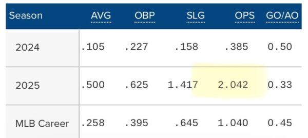 2025年ワールドシリーズ第3戦までの大谷翔平のOPSは2.433
